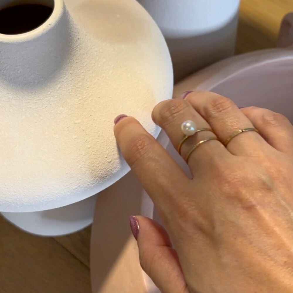 華奢でシンプルなパールリングは1本でも、重ね付けも楽しんで頂けます。