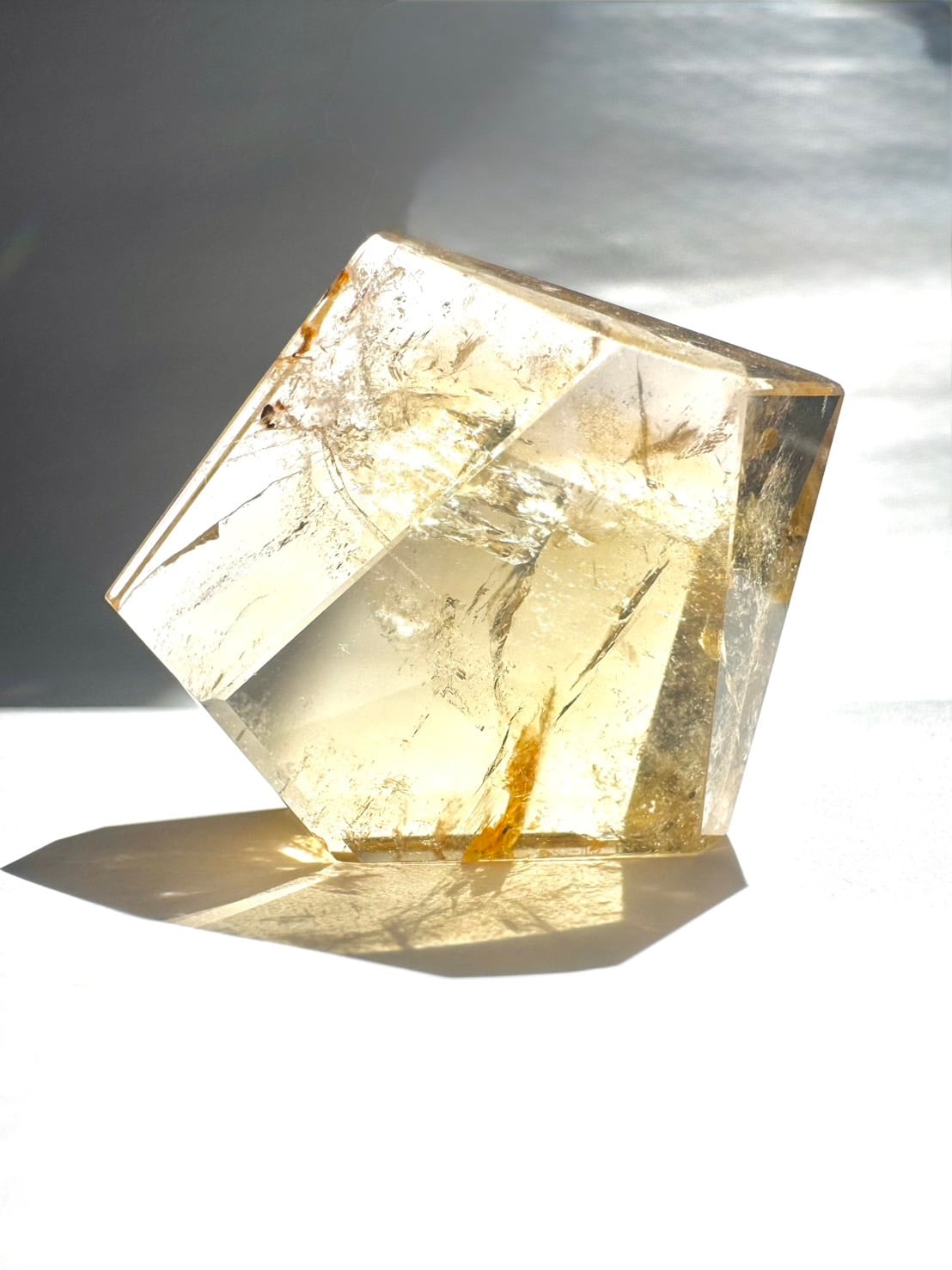 シトリンは商売繁盛や金運アップ、仕事の成功、豊かさ、繁栄をもたらすとされています。フリーフォームで寝かせても、立てても飾って頂ける魅力的な形状、透明感も美しいです。