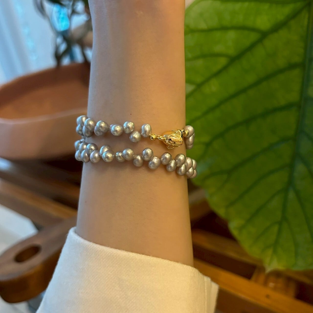マグネット式のハートクラスプで着脱もしやすく、あえて見せてポイント使いにも、2重にしてブレスレット使いも可能です。