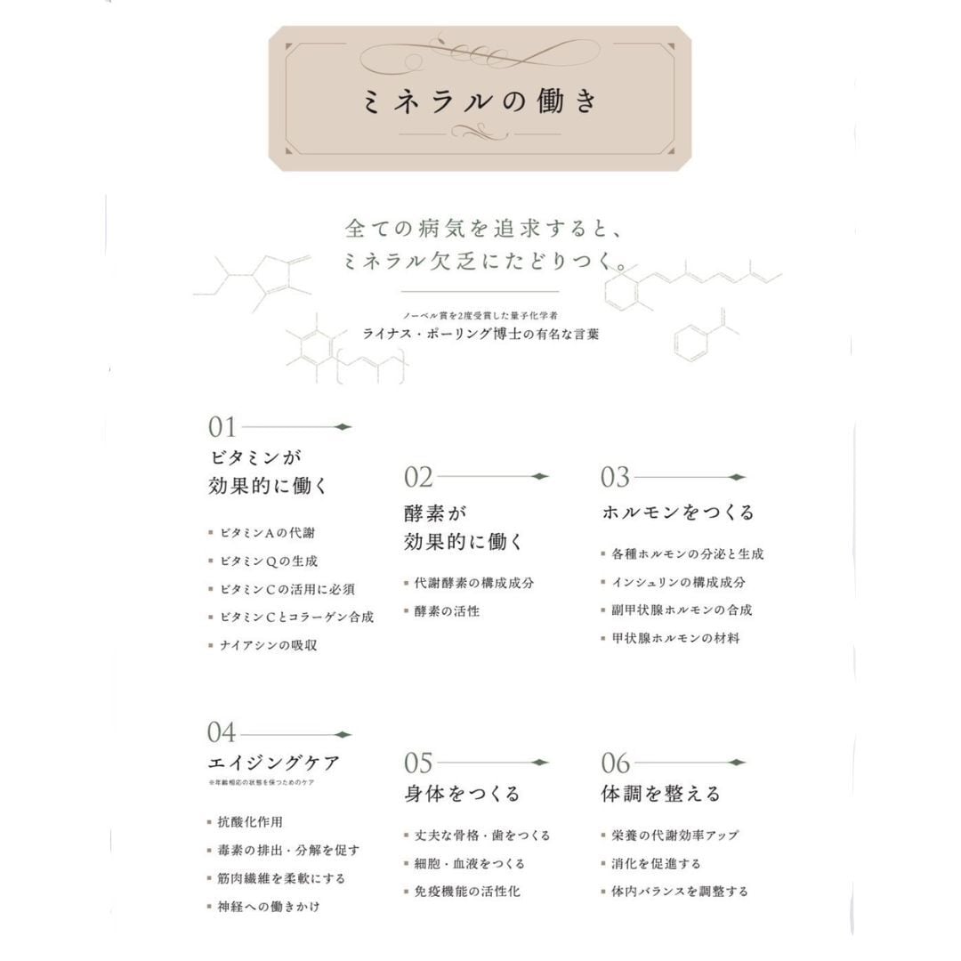 ミネラルは、人が生命活動をしていくのに70種類の必須ミネラルが必要とされています。