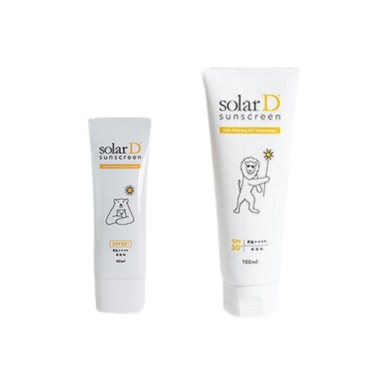 【YUUKAさんコラボ専用リンクです! 発送はコラボ終了後より順次スタート致します!】 紫外線から肌を守りつつ、必要な波長を妨げない、画期的なサンプロテクション ※bear ,girl ,lion ともにパッケージのみ異なりますが内容物は異なりません 【ソーラーDの特色】 ・必要な波長を妨げない、「UVBフィルタリング技術」採用 ・SPF50+、PA++++ ・化粧持ち効果 ・お顔にもボディにも ・石鹸で簡単にオフ ・ベタつかず、さわやかな使い心地 ・白浮きしない ・香料/パラベン/PABA/グルテンを含まない ・ハワイでのサンゴ礁に有害な成分を含みません ・動物実験なし ソーラーD独自のUVBフィルタリング技術により、SPF50+、PA++++で肌をしっかりと保護。 ハワイで禁止のサンゴに有害な物質を含まない日焼け止めです。生後6カ月のお子様から大人まで、ファミリーでご利用いただけます。 ●内容量:40ml