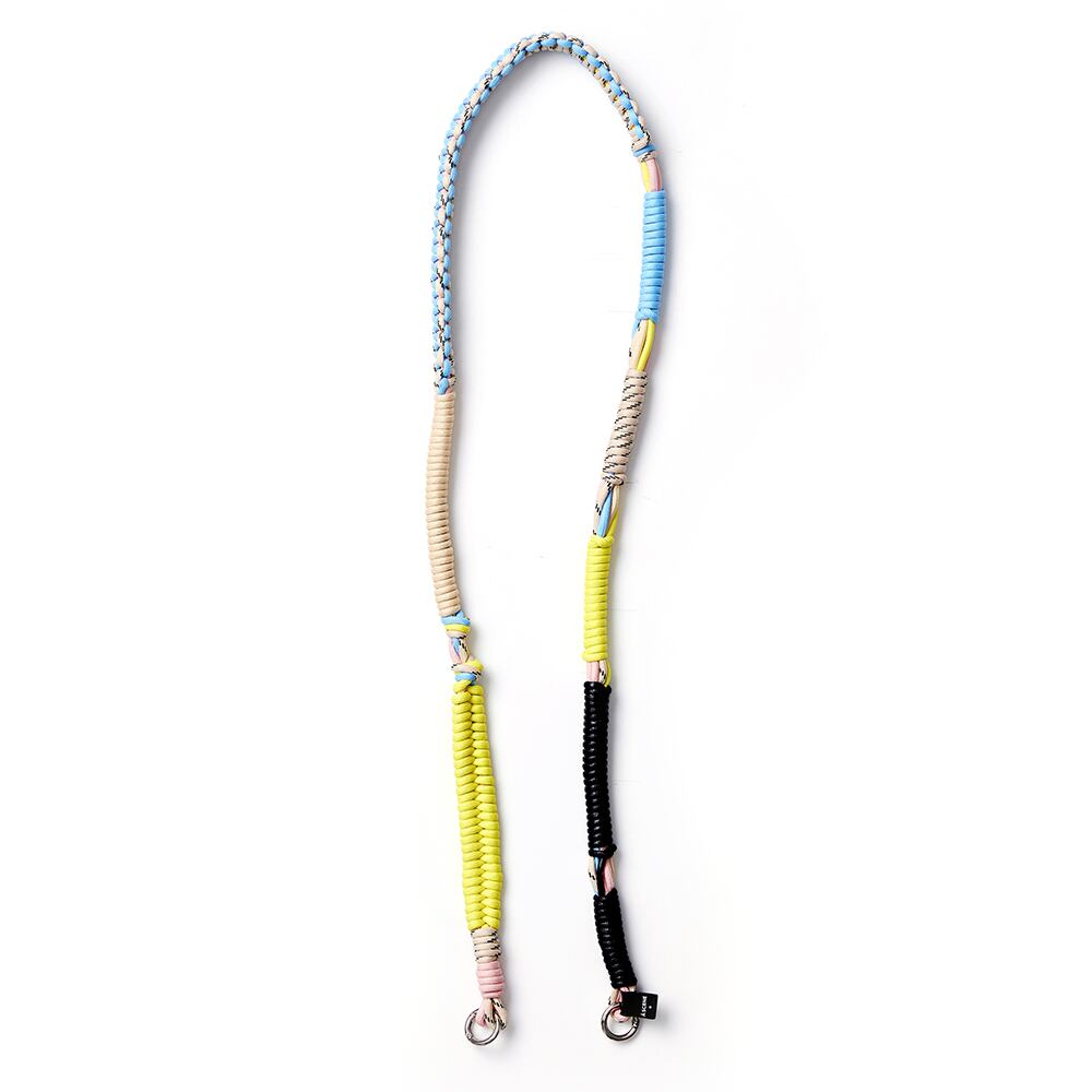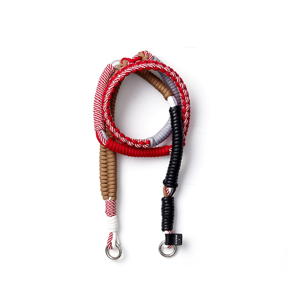 様々なカラーのパラコードを複雑に編み込み存在感のあるショルダーストラップ。